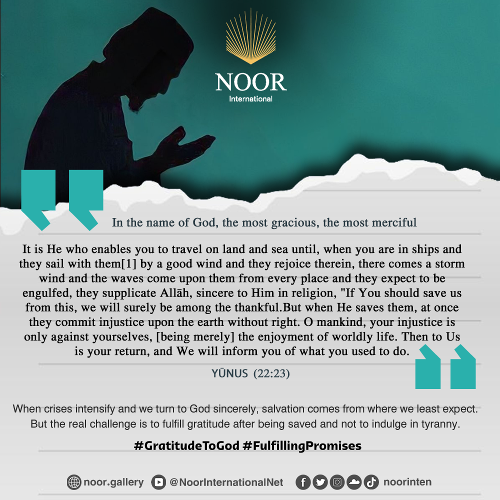 "When crises intensify and we turn to God sincerely, salvation comes from where we least expect. But the real challenge is to fulfill gratitude after being saved and not to indulge in tyranny." #GratitudeToGod #FulfillingPromises