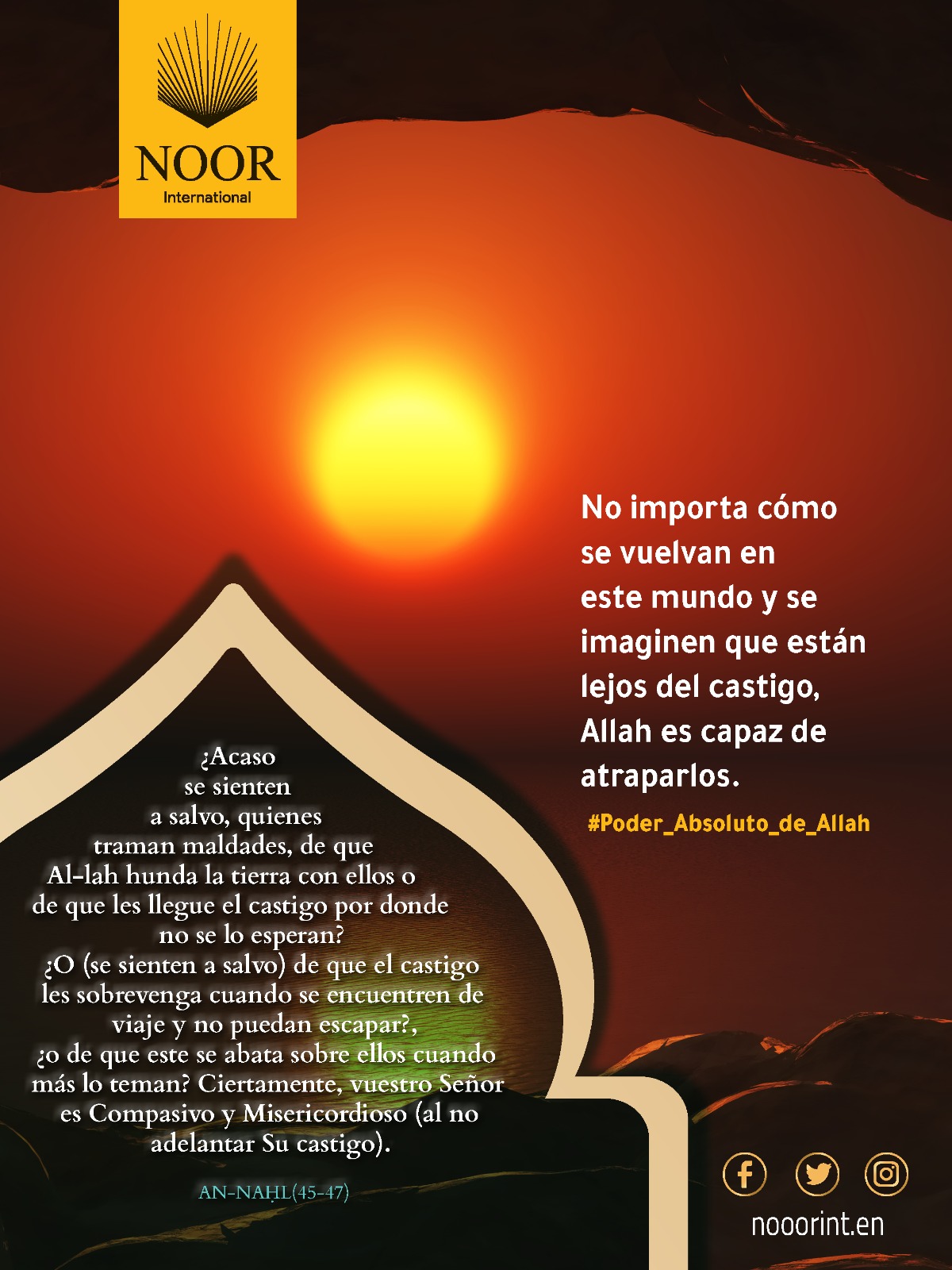 No importa cómo se vuelvan en este mundo y se imaginen que están lejos del castigo, Allah es capaz de atraparlos. #Poder_Absoluto_de_Allah