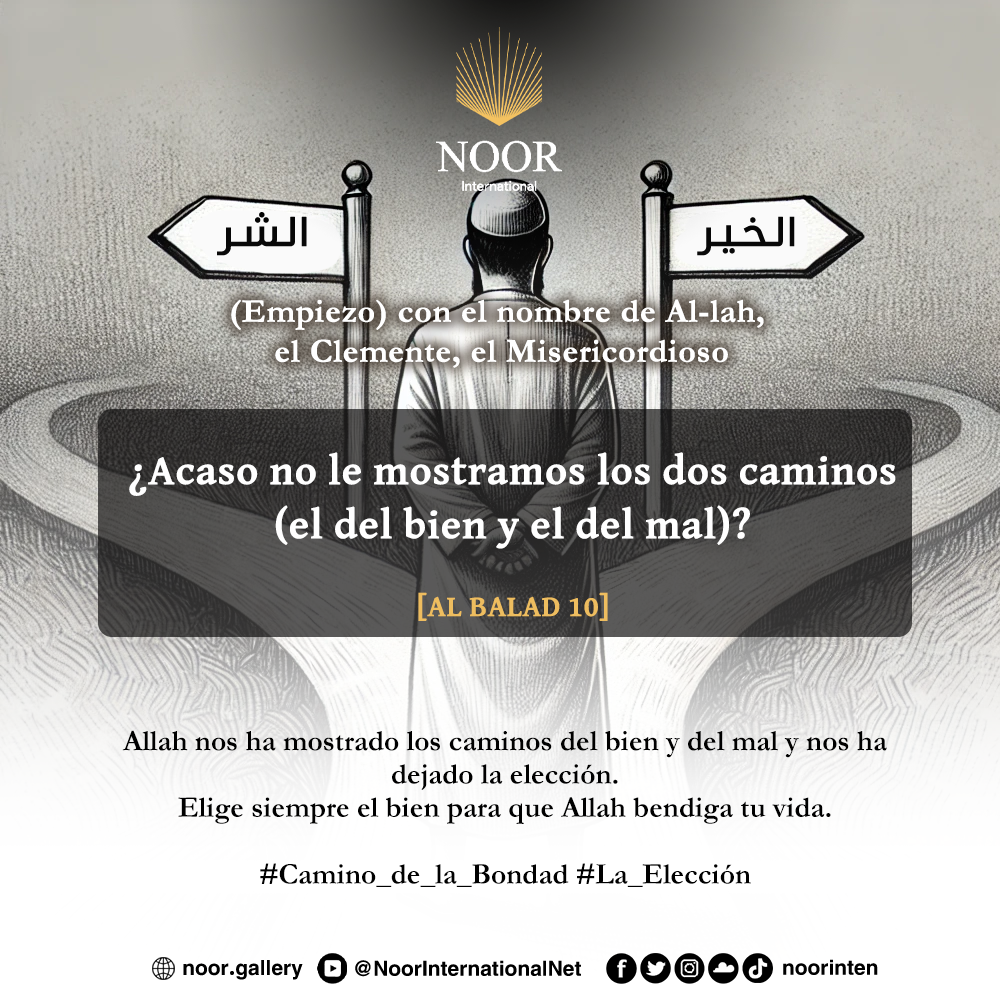 Allah nos ha mostrado los caminos del bien y del mal y nos ha dejado la elección. Elige siempre el bien para que Allah bendiga tu vida. #Camino_de_la_Bondad #La_Elección