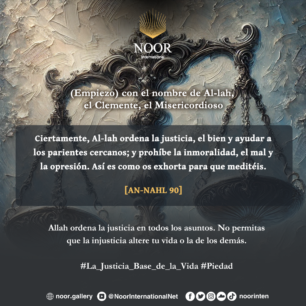 Allah ordena la justicia en todos los asuntos. No permitas que la injusticia altere tu vida o la de los demás. #La_Justicia_Base_de_la_Vida #Piedad