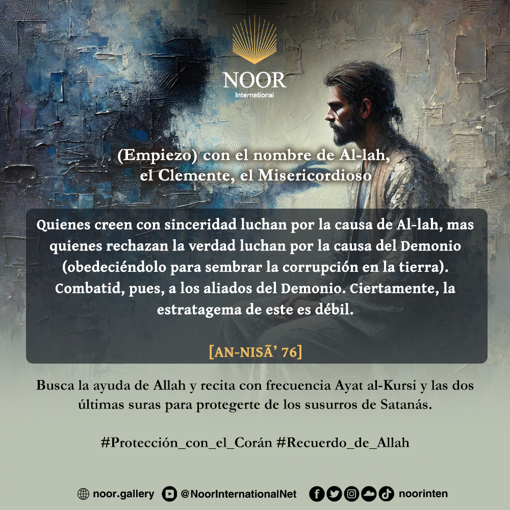 Busca la ayuda de Allah y recita con frecuencia Ayat al-Kursi y las dos últimas suras para protegerte de los susurros de Satanás. #Protección_con_el_Corán #Recuerdo_de_Allah