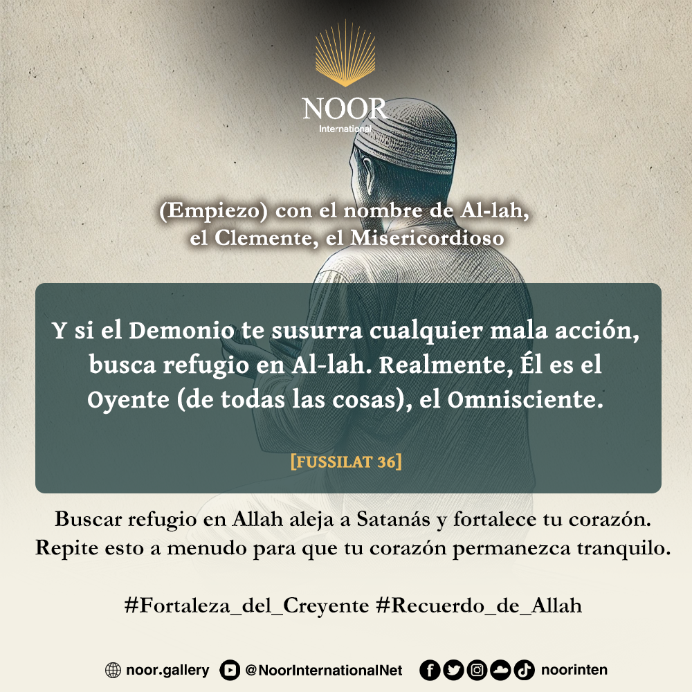 Buscar refugio en Allah aleja a Satanás y fortalece tu corazón. Repite esto a menudo para que tu corazón permanezca tranquilo. #Fortaleza_del_Creyente #Recuerdo_de_Allah