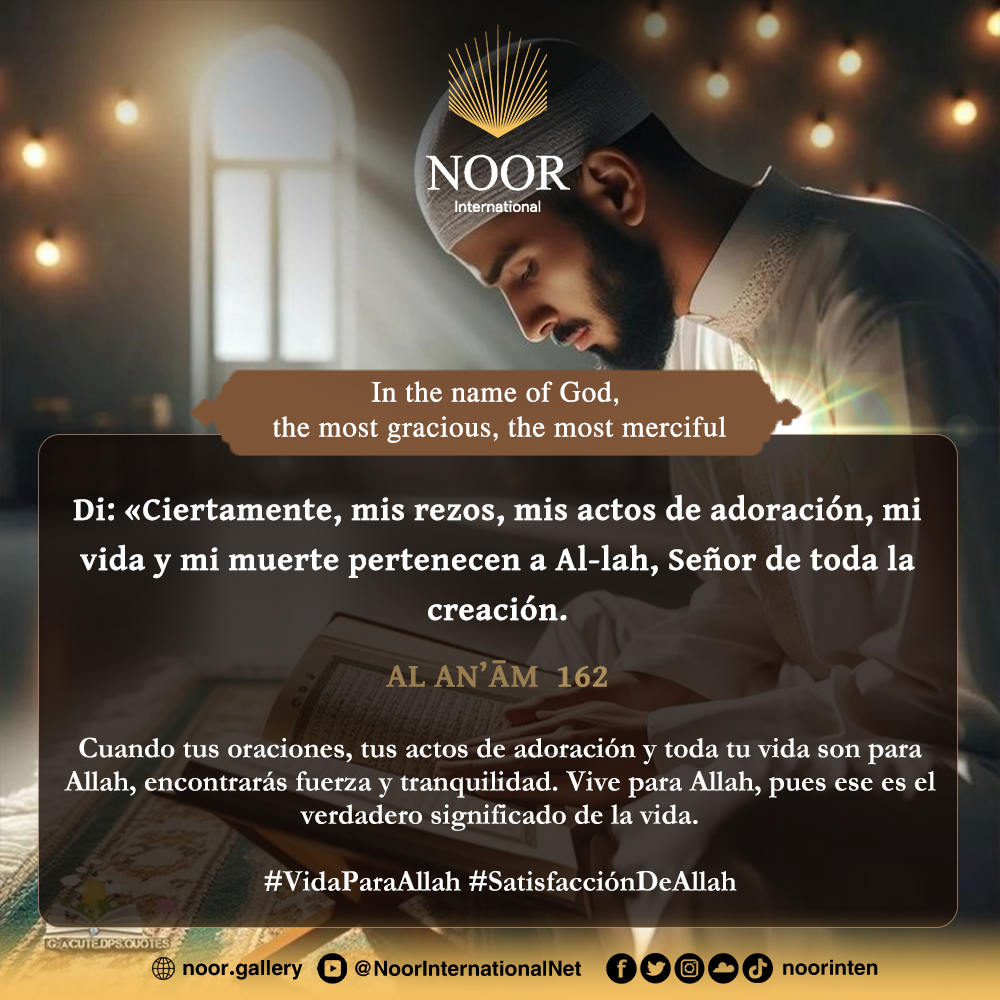 Cuando tus oraciones, tus actos de adoración y toda tu vida son para Allah, encontrarás fuerza y tranquilidad. Vive para Allah, pues ese es el verdadero significado de la vida. #VidaParaAllah #SatisfacciónDeAllah