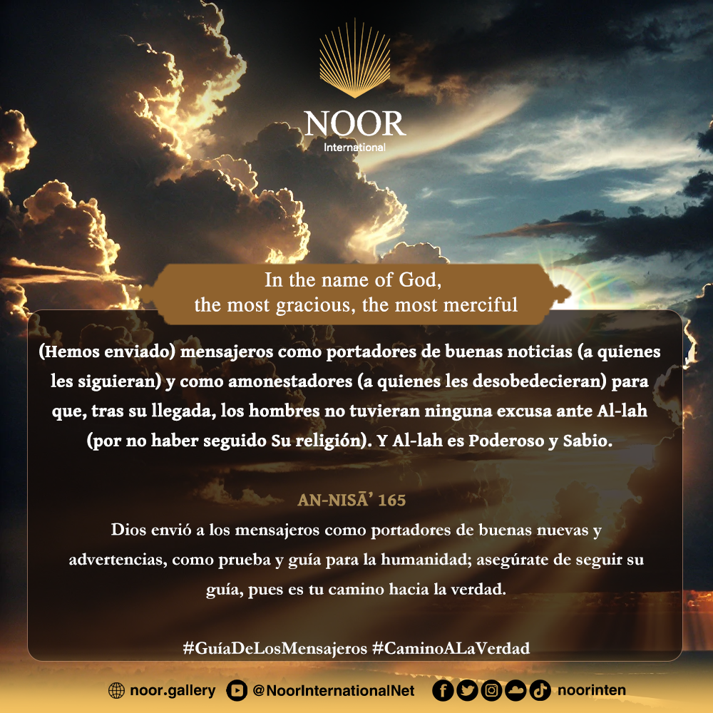 Dios envió a los mensajeros como portadores de buenas nuevas y advertencias, como prueba y guía para la humanidad; asegúrate de seguir su guía, pues es tu camino hacia la verdad. #GuíaDeLosMensajeros #CaminoALaVerdad