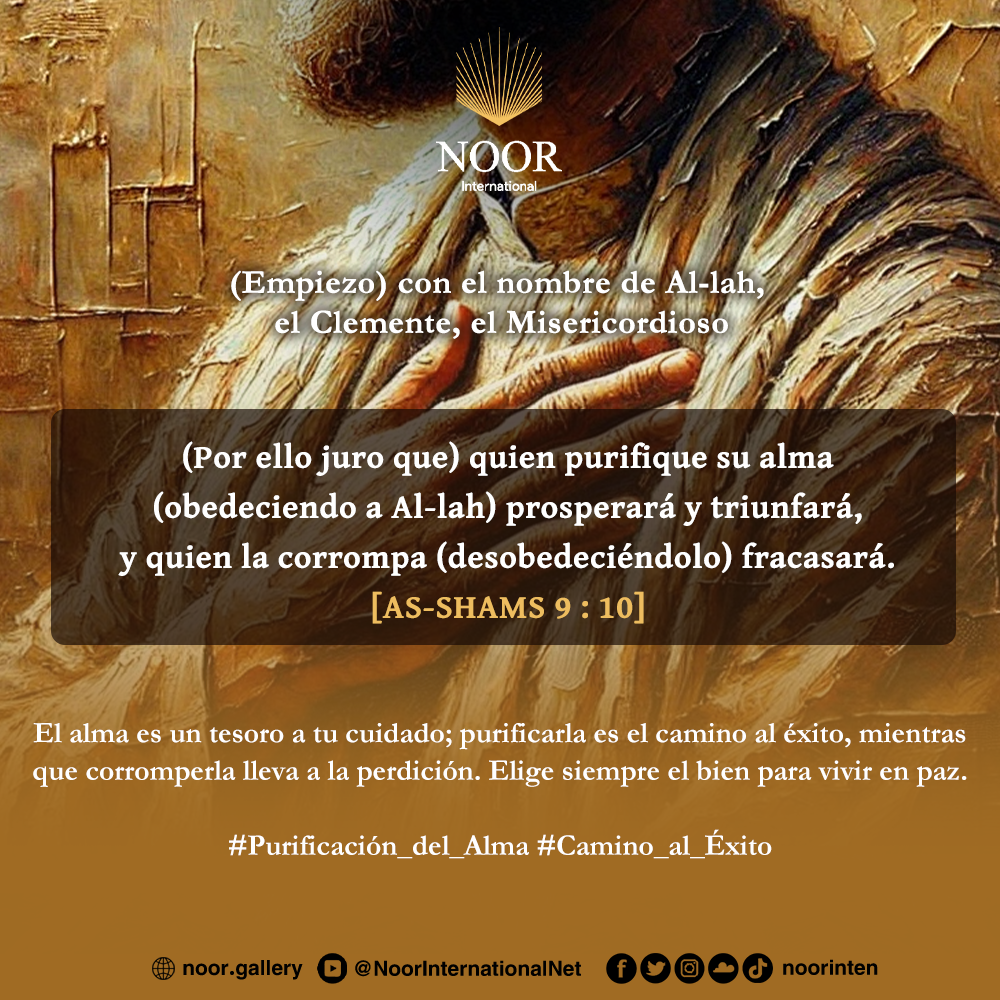 El alma es un tesoro a tu cuidado; purificarla es el camino al éxito, mientras que corromperla lleva a la perdición. Elige siempre el bien para vivir en paz.