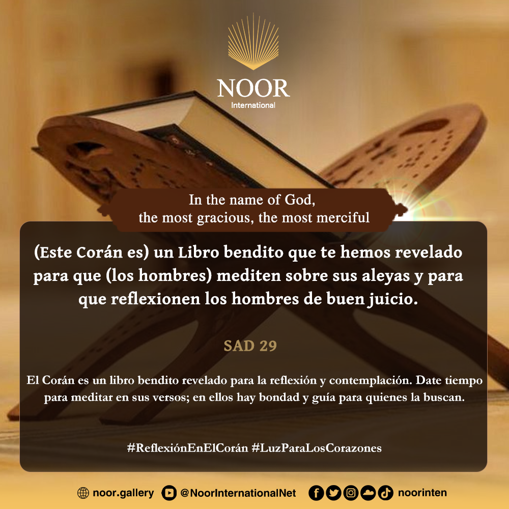 El Corán es un libro bendito revelado para la reflexión y contemplación. Date tiempo para meditar en sus versos; en ellos hay bondad y guía para quienes la buscan. #ReflexiónEnElCorán #LuzParaLosCorazones
