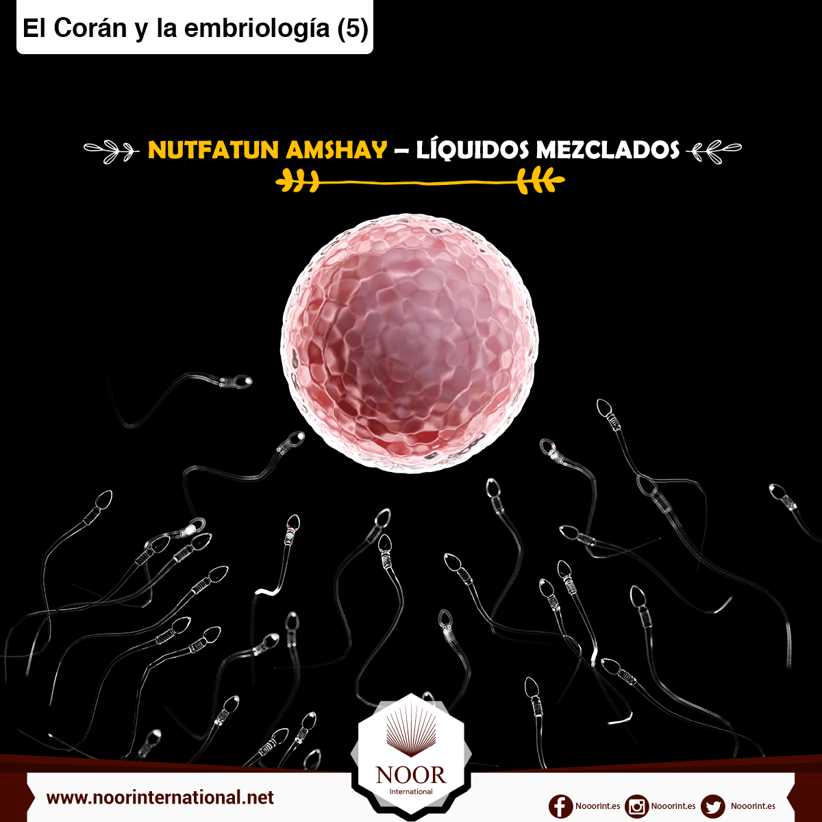 La frase árabe nutfatin amshayin significa “líquidos mezclados”. De acuerdo con algunos exégetas del Corán, con “líquidos mezclados” se refiere a los del hombre y la mujer: luego de mezclarse los gametos del hombre y la mujer, el cigoto sigue siendo una nutfah. La expresión “líquidos mezclados” también puede referirse al fluido de esperma que se forma en varias secreciones provenientes de diferentes glándulas.
