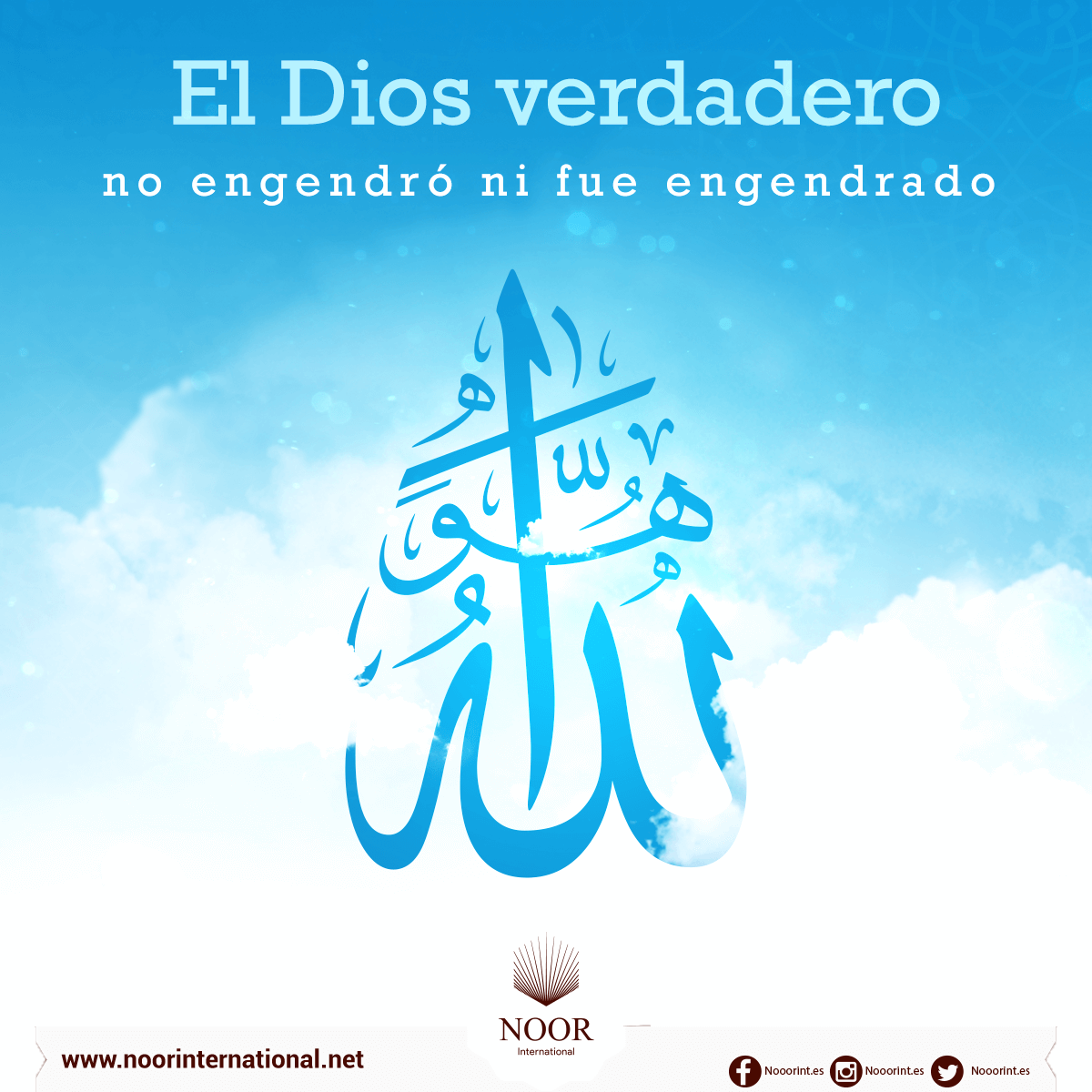 Dios dijo: {Di (¡oh, Muhammad!): “Él es Al-lah, el único (Señor de toda la creación y el único que merece ser adorado);-Al-lah, el Eterno -No ha engendrado ningún hijo ni ha sido engendrado.- Y no hay nada ni nadie que se asemeje a Él”.}