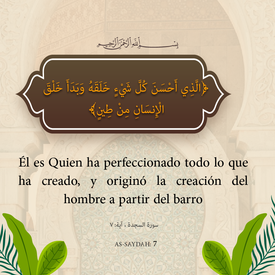 Él es Quien ha perfeccionado todo lo que ha creado, y originó la creación del hombre a partir del barro.