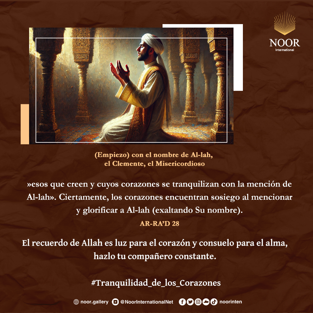 El recuerdo de Allah es luz para el corazón y consuelo para el alma, hazlo tu compañero constante. #Tranquilidad_de_los_Corazones