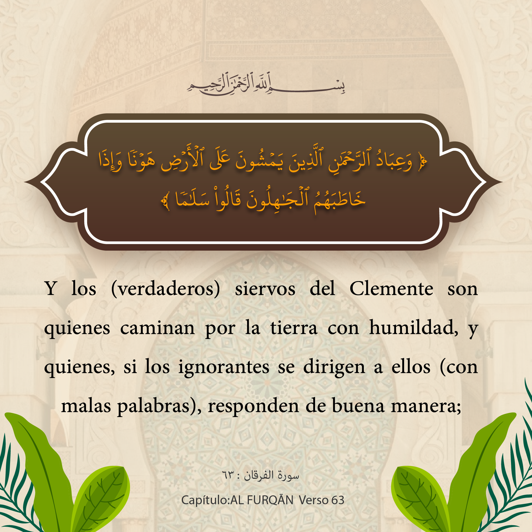 Y los (verdaderos) siervos del Clemente son quienes caminan por la tierra con humildad, y quienes, si los ignorantes se dirigen a ellos (con malas palabras), responden de buena manera;