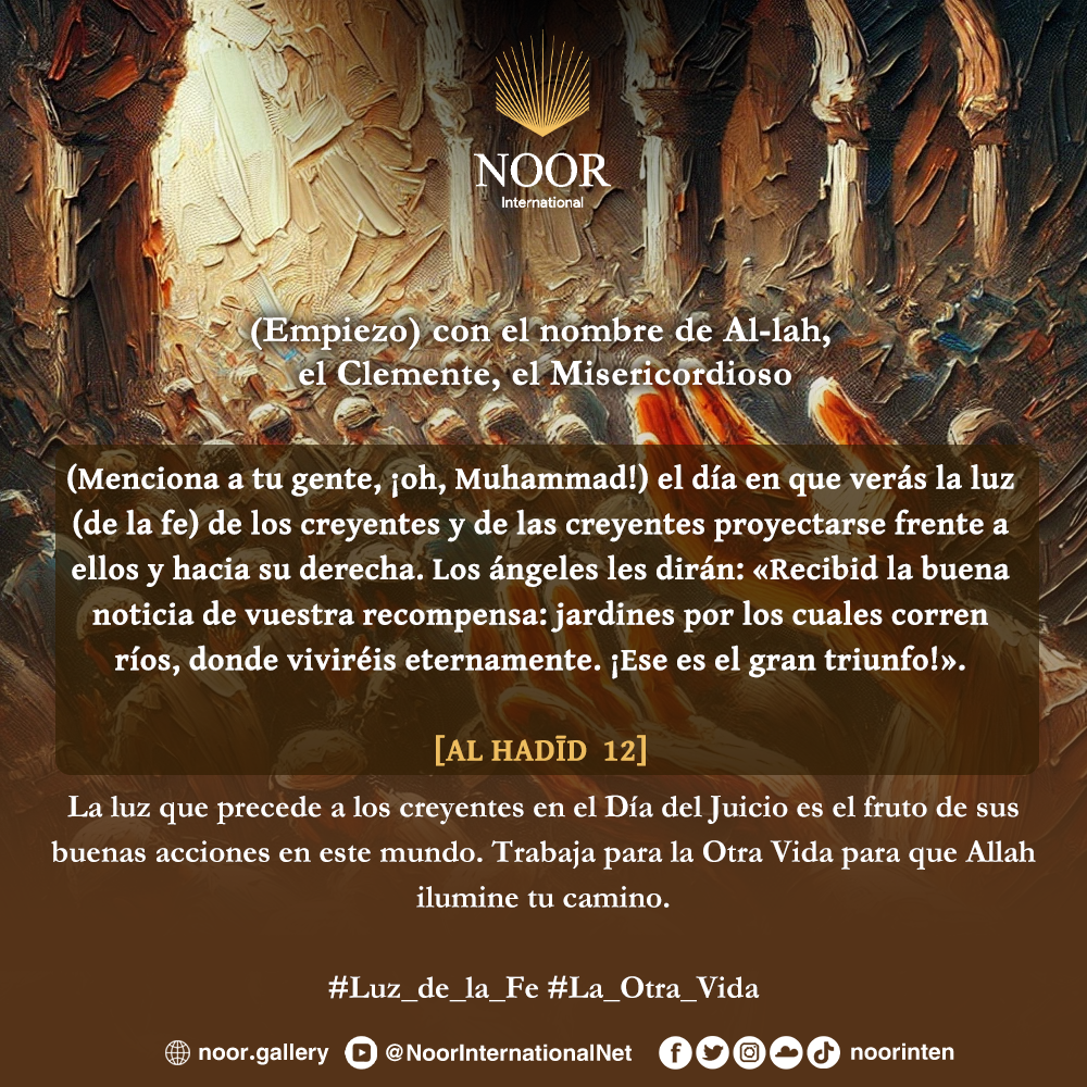 La luz que precede a los creyentes en el Día del Juicio es el fruto de sus buenas acciones en este mundo. Trabaja para la Otra Vida para que Allah ilumine tu camino. #Luz_de_la_Fe #La_Otra_Vida