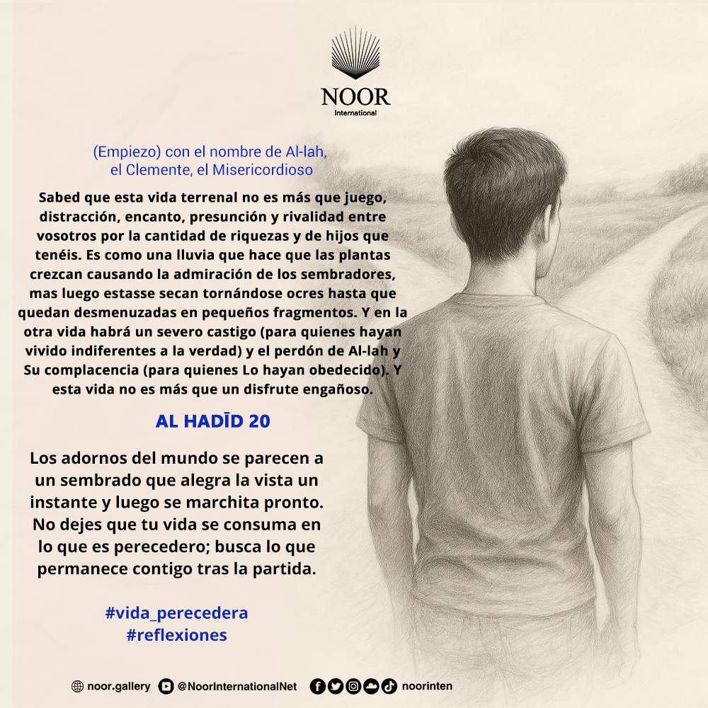 Los adornos del mundo se parecen a un sembrado que alegra la vista un instante y luego se marchita pronto. No dejes que tu vida se consuma en lo que es perecedero; busca lo que permanece contigo tras la partida.