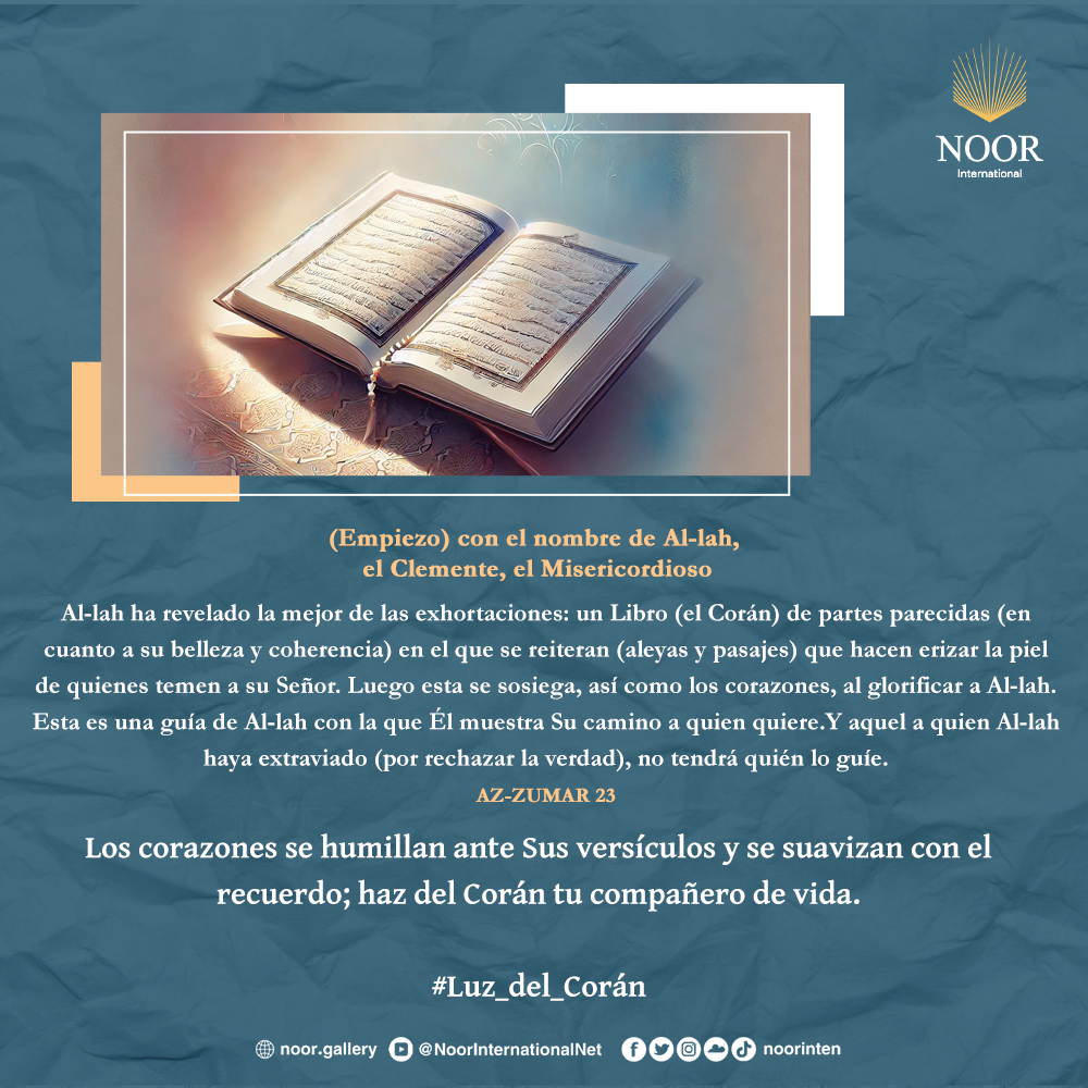 Los corazones se humillan ante Sus versículos y se suavizan con el recuerdo; haz del Corán tu compañero de vida. #Luz_del_Corán