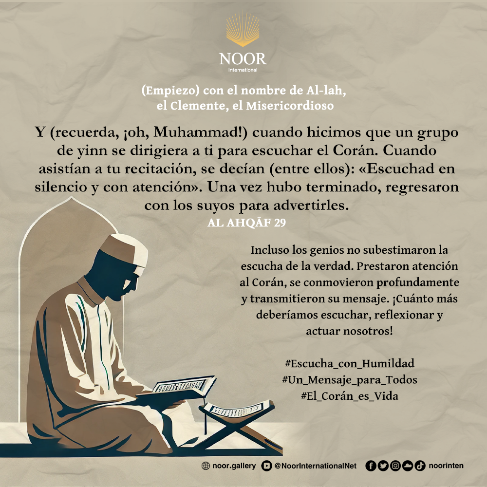 ncluso los genios no subestimaron la escucha de la verdad. Prestaron atención al Corán, se conmovieron profundamente y transmitieron su mensaje. ¡Cuánto más deberíamos escuchar, reflexionar y actuar nosotros!