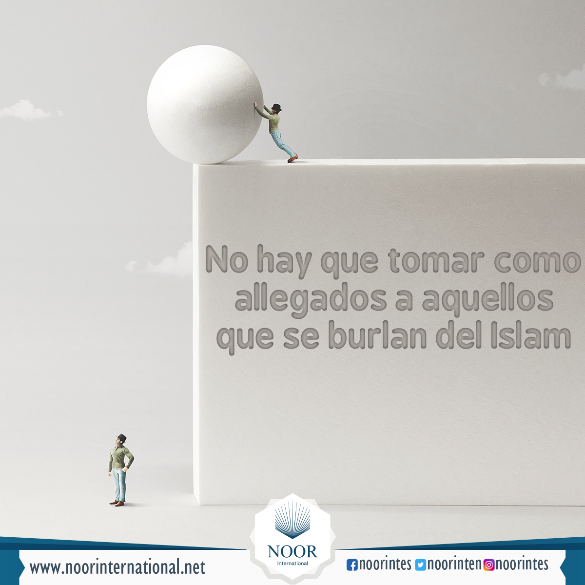 Al-lah nos ordenó no tomar como allegados o aliados a aquellos que se burlan de la religión en general y del Islam en particular. El creyente no debe mirar a estas personas con admiración.