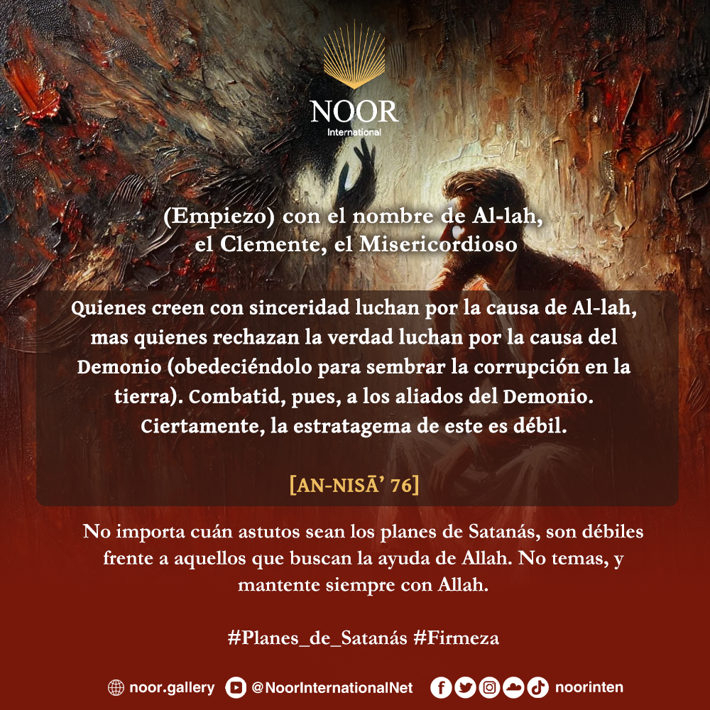 No importa cuán astutos sean los planes de Satanás, son débiles frente a aquellos que buscan la ayuda de Allah. No temas, y mantente siempre con Allah. #Planes_de_Satanás #Firmeza