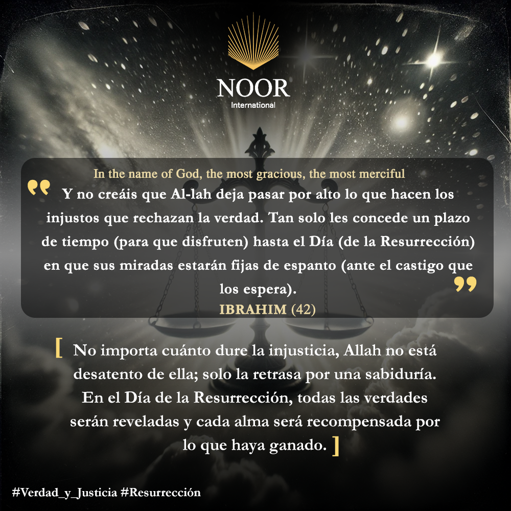 No pienses que la injusticia pasa desapercibida; Allah concede tiempo pero nunca descuida. El Día del Juicio es inevitable, un día en que los ojos se elevarán con asombro y miedo. #Justicia_Divina #Día_del_Juicio