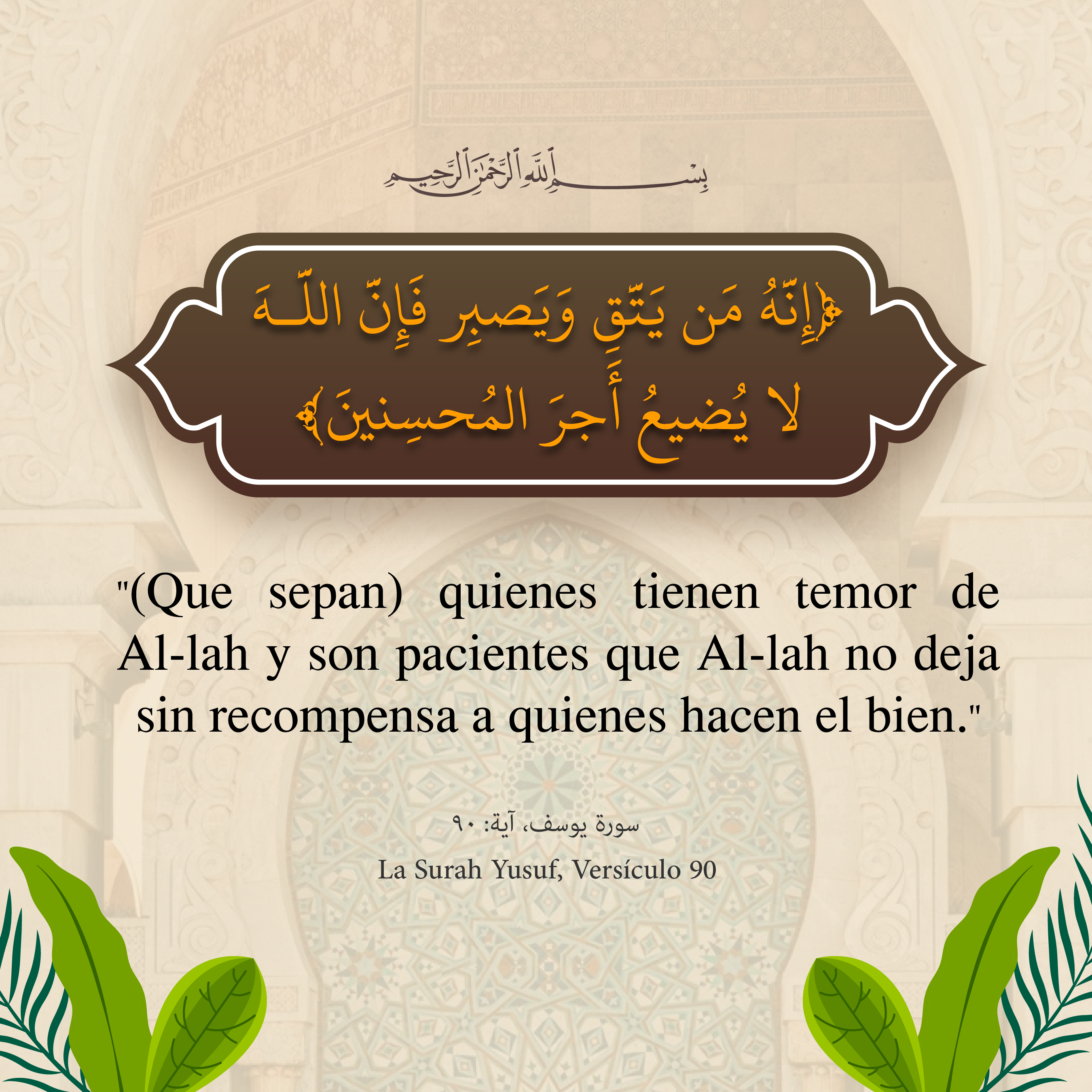 (Que sepan) quienes tienen temor de Al-lah y son pacientes que Al-lah no deja sin recompensa a quienes hacen el bien»