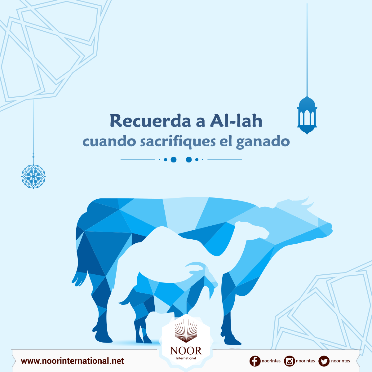 Antes del sacrificio de ganado (camellos, ovejas, vacas y aves) Al-lah Todopoderoso nos ordena recordar Su nombre sobre ellos y decir Al-lahu Akbar (Al-lah es el Más Grande). Esta es una de las tantas acciones que ayudan al creyente a vivir siendo consciente de Al-lah en todas sus circunstancias.