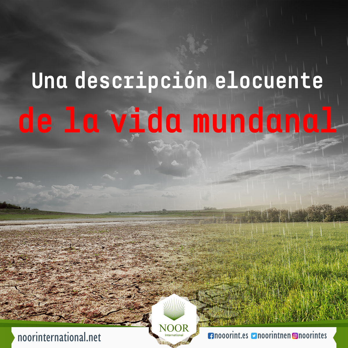 En el Corán, Dios compara la vida mundanal con una tierra estéril sobre la que cayó lluvia haciéndola florecer abundantemente, pero cuyos frutos fueron destruidos por un viento devastador.