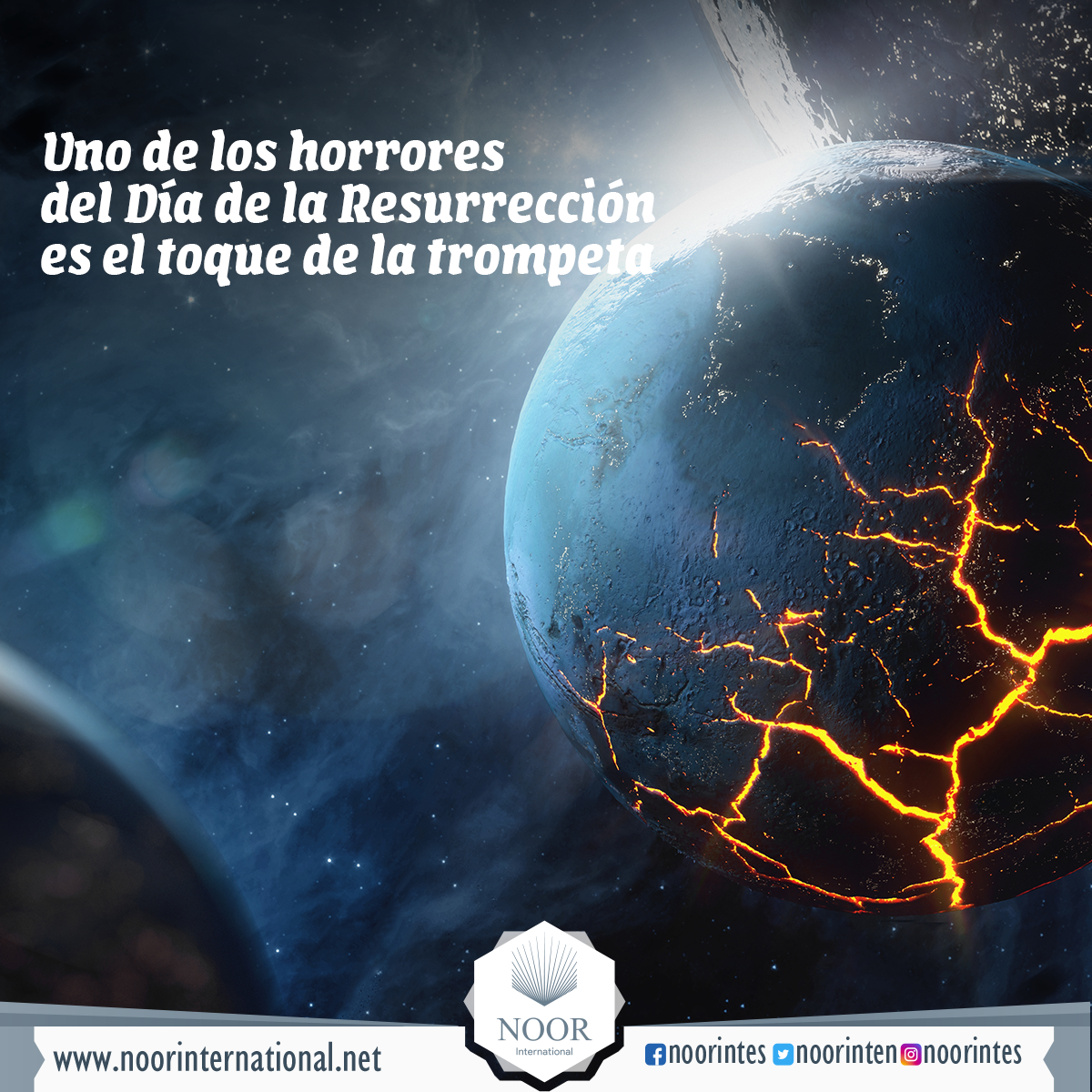 Cuando el ángel encargado de tocar el “el cuerno” sople una vez, vendrá la destrucción del mundo. La tierra y las montañas saldrán volando, se romperán y serán pulverizadas. En ese momento comenzará la Resurrección.