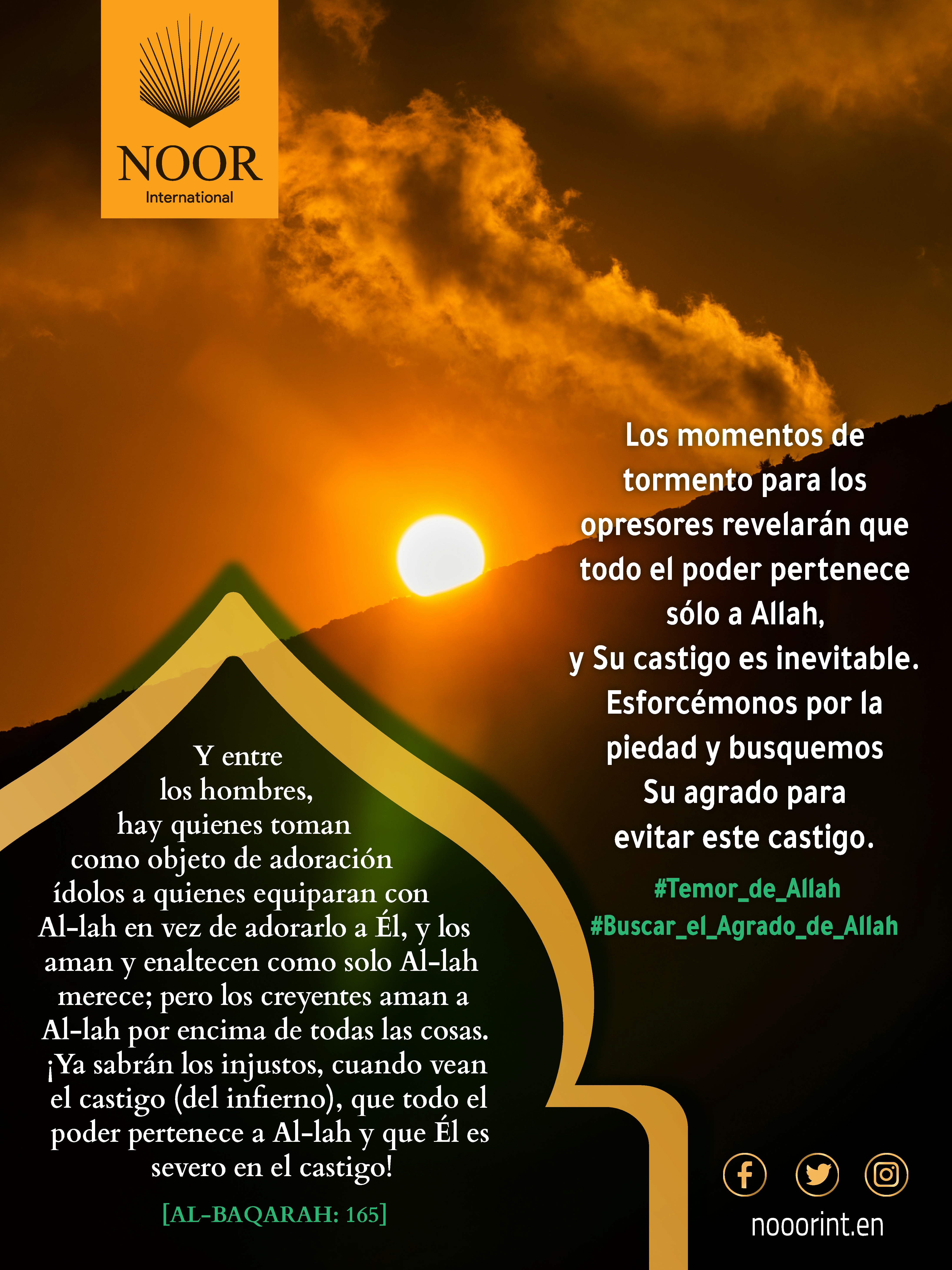 "Los momentos de tormento para los opresores revelarán que todo el poder pertenece sólo a Allah, y Su castigo es inevitable. Esforcémonos por la piedad y busquemos Su agrado para evitar este castigo." #Temor_de_Allah #Buscar_el_Agrado_de_Allah