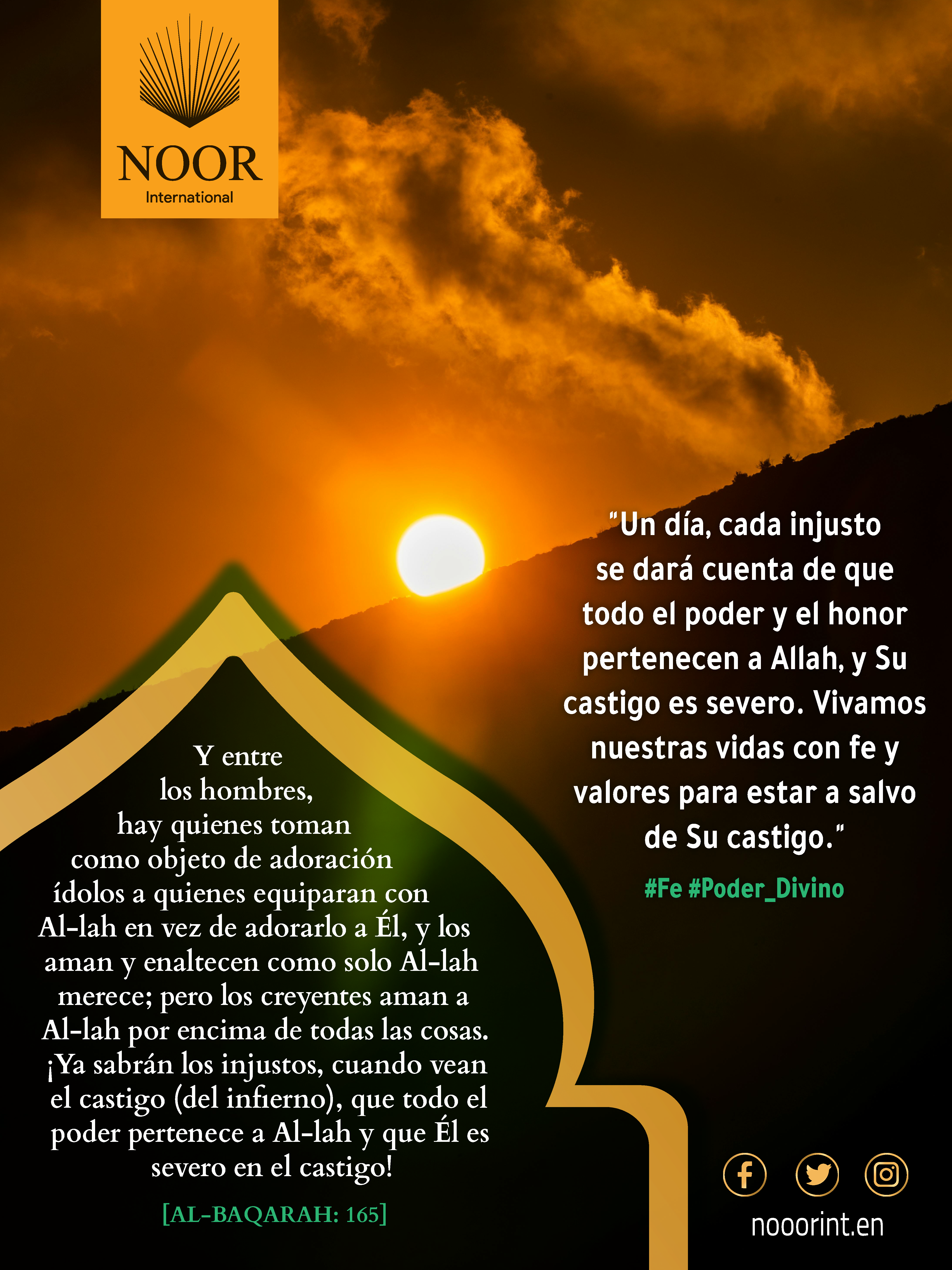 Un día, cada injusto se dará cuenta de que todo el poder y el honor pertenecen a Allah, y Su castigo es severo. Vivamos nuestras vidas con fe y valores para estar a salvo de Su castigo." #Fe #Poder_Divino