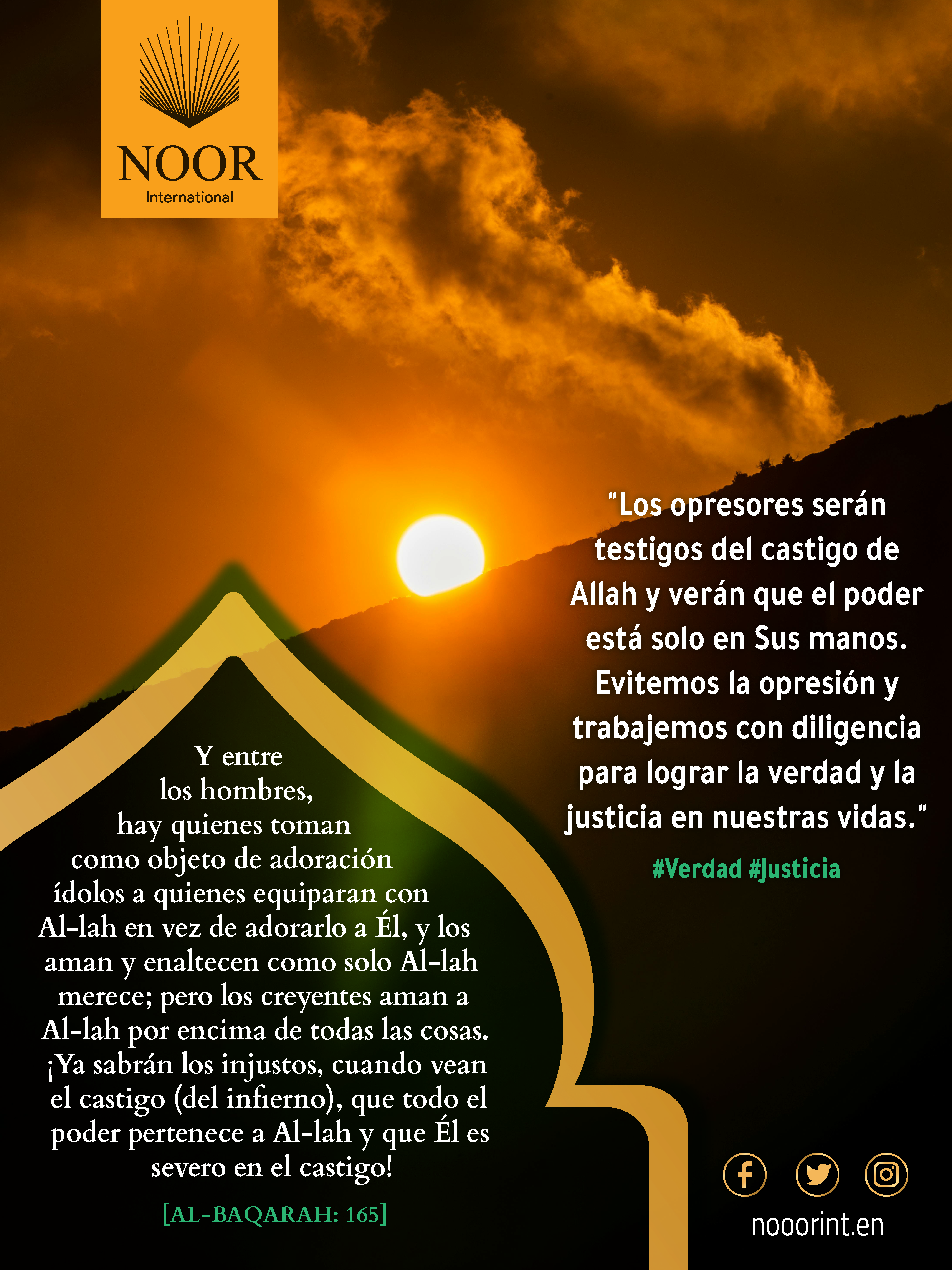 "Los opresores serán testigos del castigo de Allah y verán que el poder está solo en Sus manos. Evitemos la opresión y trabajemos con diligencia para lograr la verdad y la justicia en nuestras vidas." #Verdad #Justicia