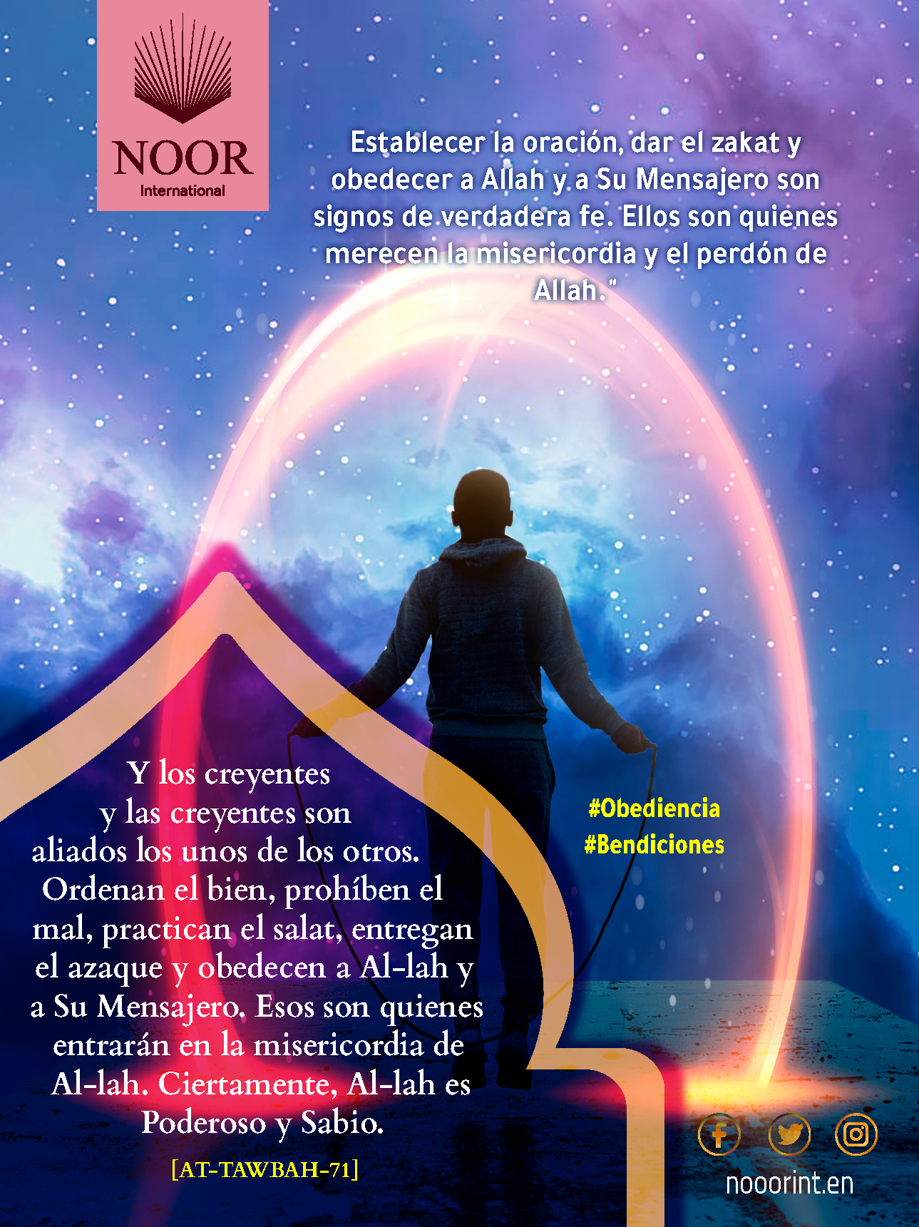 "Establecer la oración, dar el zakat y obedecer a Allah y a Su Mensajero son signos de verdadera fe. Ellos son quienes merecen la misericordia y el perdón de Allah." #Obediencia #Bendiciones