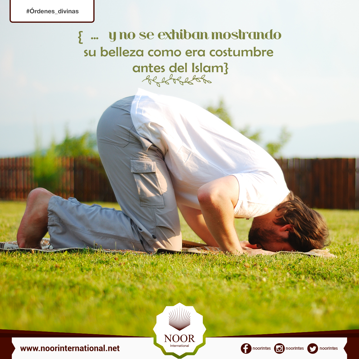 {Permanezcan en sus hogares y (si tienen que salir) no se exhiban mostrando su belleza como era costumbre antes del Islam. Realicen el salat, entreguen el azaque y obedezcan a Al-lah y a Su Mensajero. Al-lah quiere alejarlos de todo pecado, ¡oh familia del Profeta !, y quiere purificarlos.}