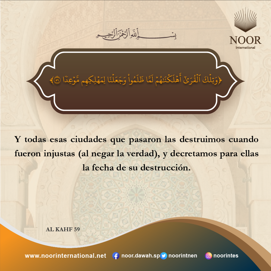 Y todas esas ciudades que pasaron las destruimos cuando fueron injustas (al negar la verdad), y decretamos para ellas la fecha de su destrucción.