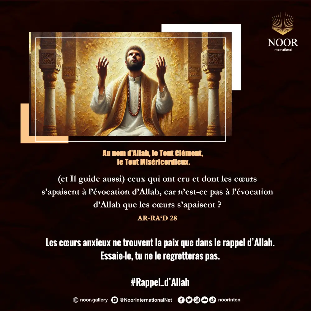 Les cœurs anxieux ne trouvent la paix que dans le rappel d’Allah. Essaie-le, tu ne le regretteras pas.