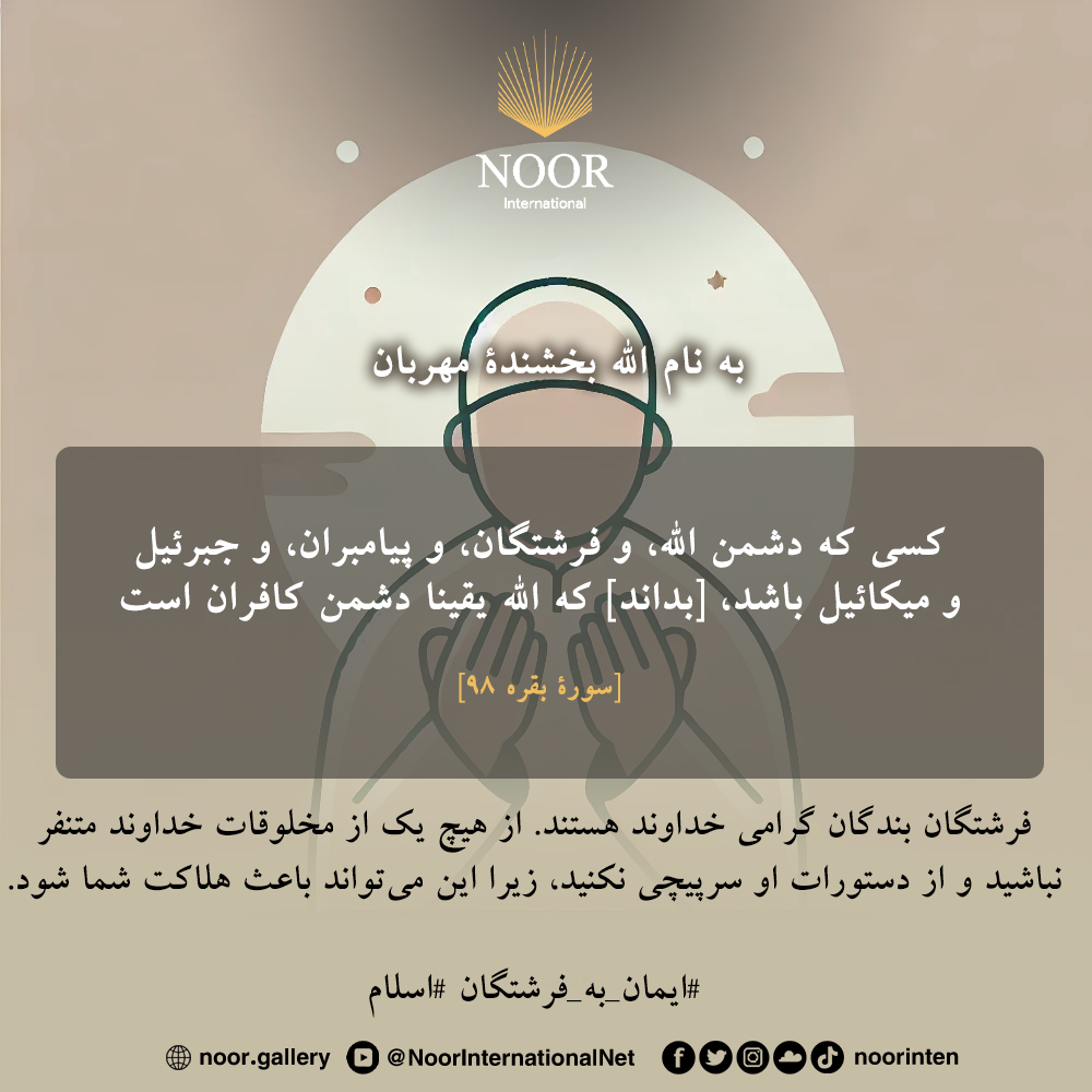 فرشتگان بندگان گرامی خداوند هستند. از هیچ یک از مخلوقات خداوند متنفر نباشید."