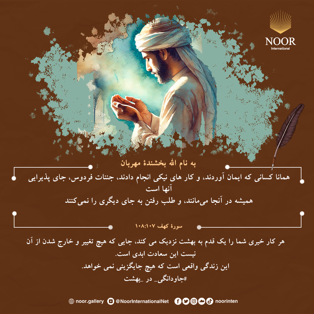 هر کار خیری شما را یک قدم به بهشت نزدیک می کند، جایی که هیچ تغییر و خارج شدن از آن نيست این سعادت ابدی است.