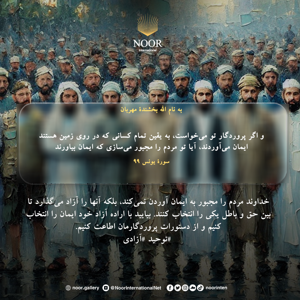خداوند مردم را مجبور به ایمان آوردن نمی‌کند، بلکه آنها را آزاد می‌گذارد تا بین حق و باطل یکی را انتخاب کنند.