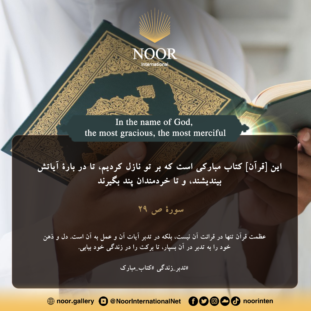 عظمت قرآن تنها در قرائت آن نیست، بلکه در تدبر آیات آن و عمل به آن است. دل و ذهن خود را به تدبر در آن بسپار، تا برکت را در زندگی خود بیابی. #تدبر_زندگی #کتاب_مبارک
