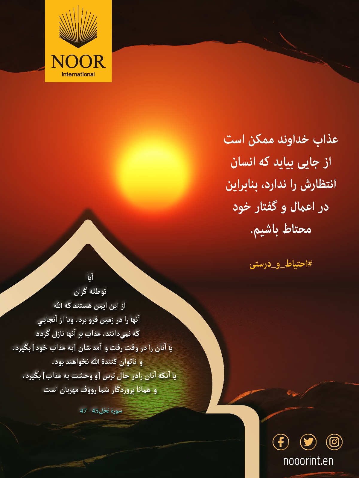 عذاب خداوند ممکن است از جایی بیاید که انسان انتظارش را ندارد، بنابراین در اعمال و گفتار خود محتاط باشیم. #احتیاط_و_درستی