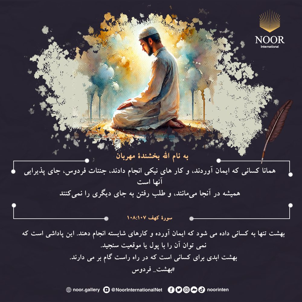 بهشت تنها به کسانی داده می شود که ایمان آورده و کارهای شایسته انجام دهند. این پاداشی است که نمی توان آن را با پول یا موقعیت سنجید.