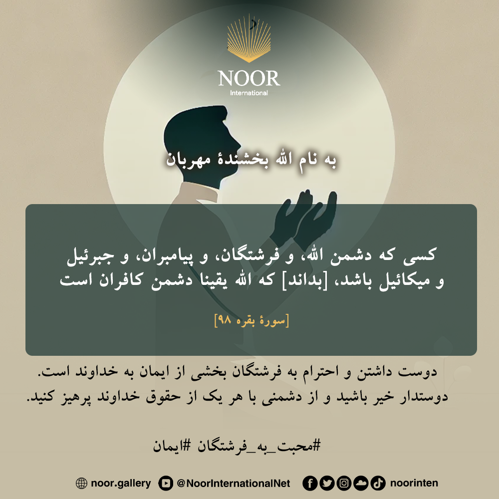 دوست داشتن و احترام به فرشتگان بخشی از ایمان به خداوند است. دوستدار خیر باشید و از دشمنی با هر یک از حقوق خداوند پرهیز کنید.