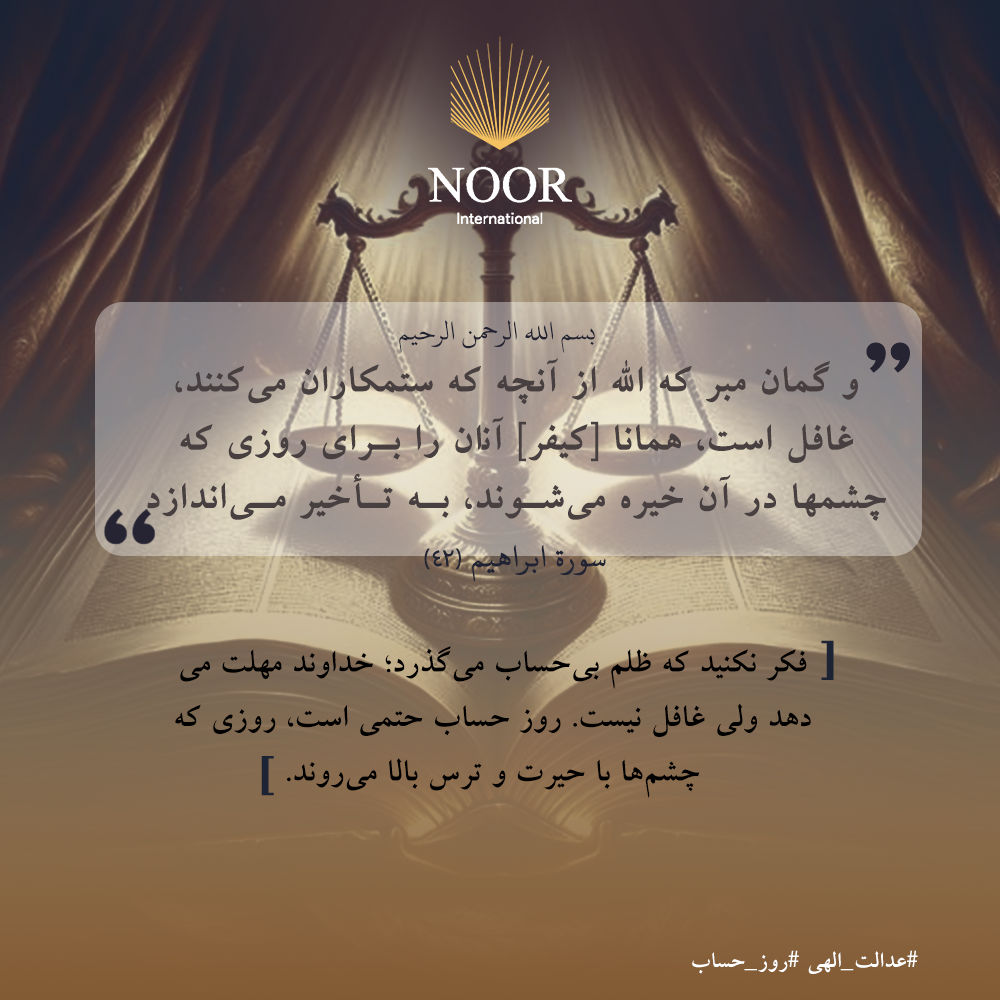 فکر نکنید که ظلم بی‌حساب می‌گذرد؛ خداوند مهلت می‌دهد ولی غافل نیست. روز حساب حتمی است، روزی که چشم‌ها با حیرت و ترس بالا می‌روند. #عدالت_الهی #روز_حساب