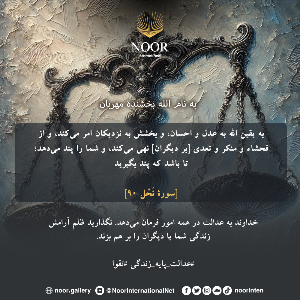 خداوند به عدالت در همه امور فرمان می‌دهد. نگذارید ظلم آرامش زندگی شما یا دیگران را بر هم بزند.