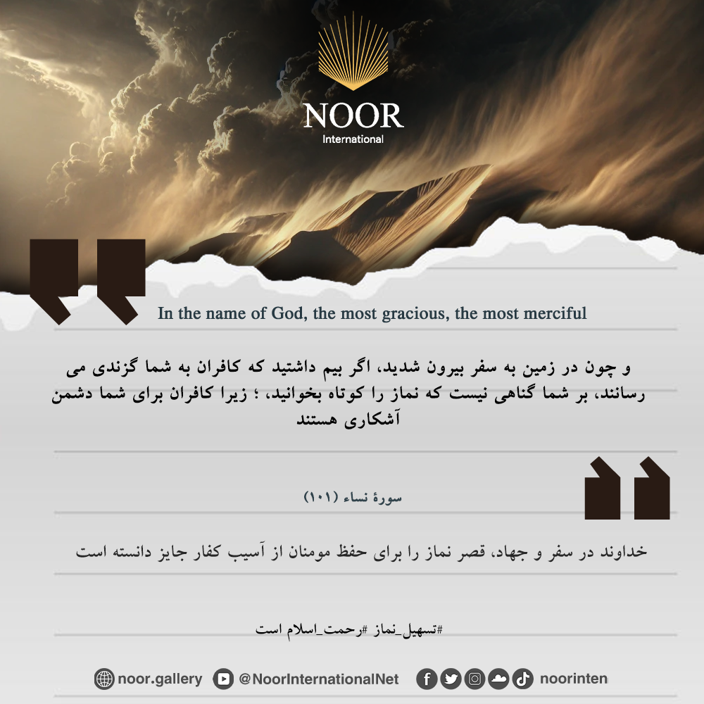 «خداوند در سفر و جهاد، قصر نماز را برای حفظ مومنان از آسیب کفار جایز دانسته است. #تسهیل_نماز #رحمت_اسلام است
