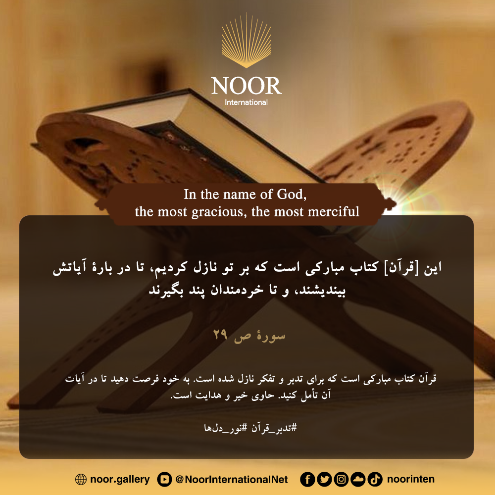 قرآن کتاب مبارکی است که برای تدبر و تفكر نازل شده است. به خود فرصت دهید تا در آیات آن تأمل کنید. حاوی خیر و هدایت است. #تدبر_قرآن #نور_دلها