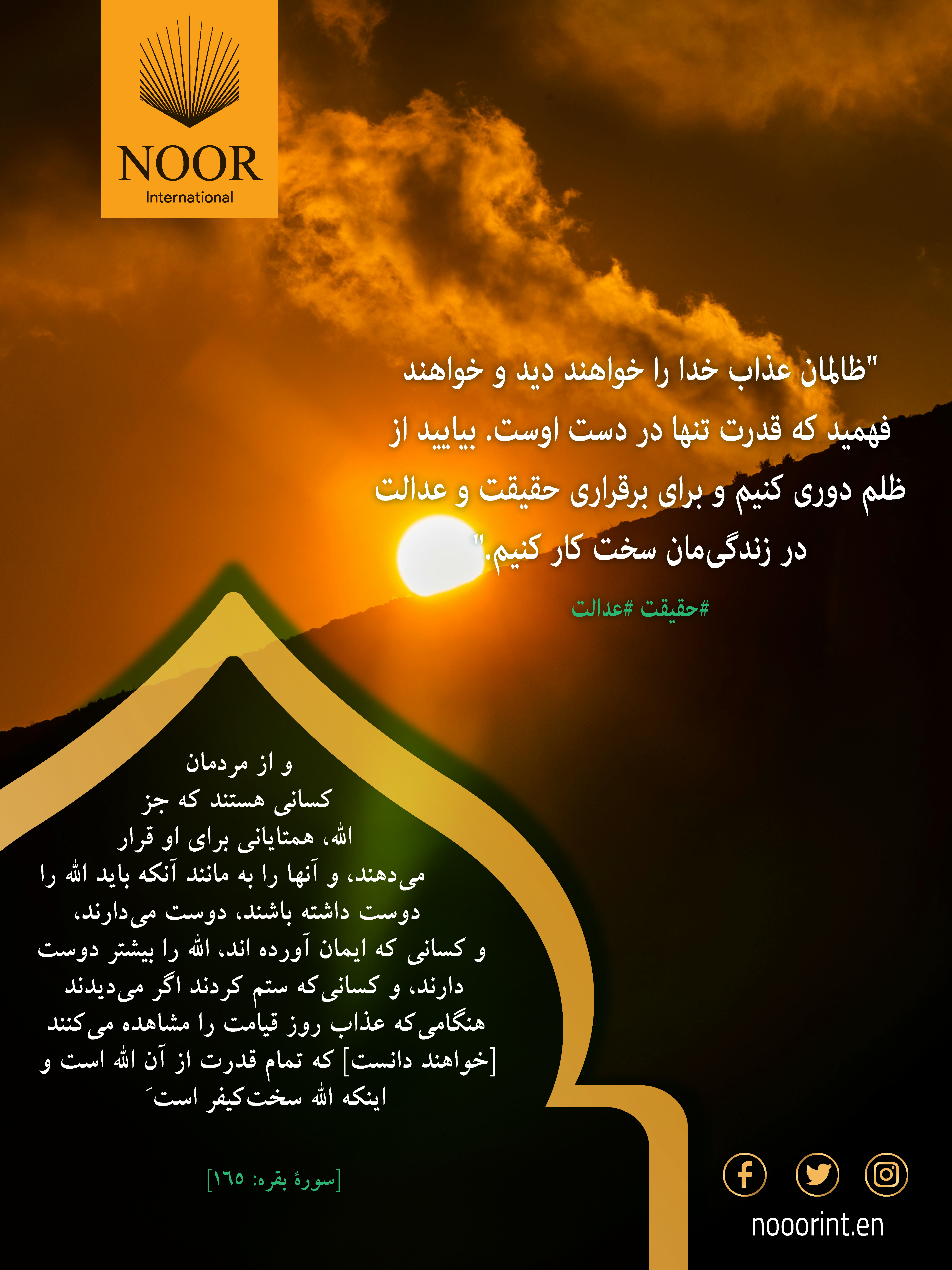 "ظالمان عذاب خدا را خواهند دید و خواهند فهمید که قدرت تنها در دست اوست. بیایید از ظلم دوری کنیم و برای برقراری حقیقت و عدالت در زندگیمان سخت کار کنیم." #حقیقت #عدالت