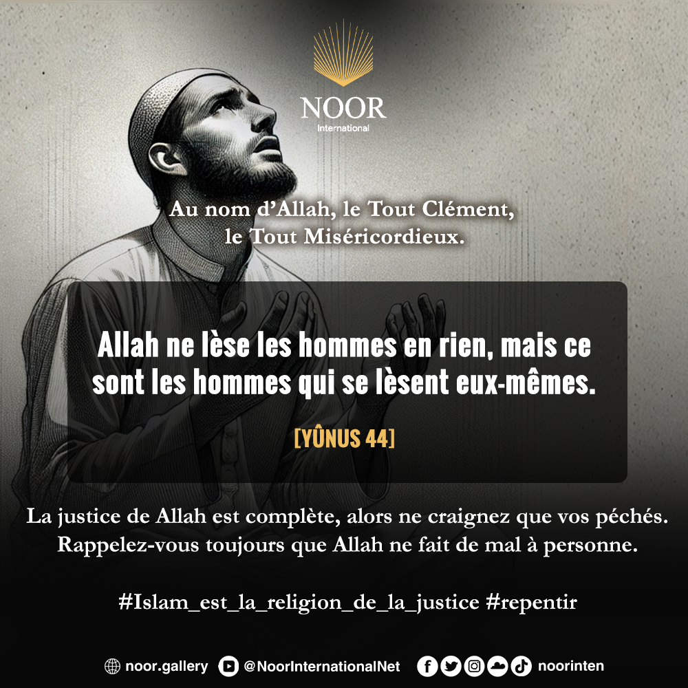 La justice de Allah est complète, alors ne craignez que vos péchés. Rappelez-vous toujours que Allah ne fait de mal à personne.
