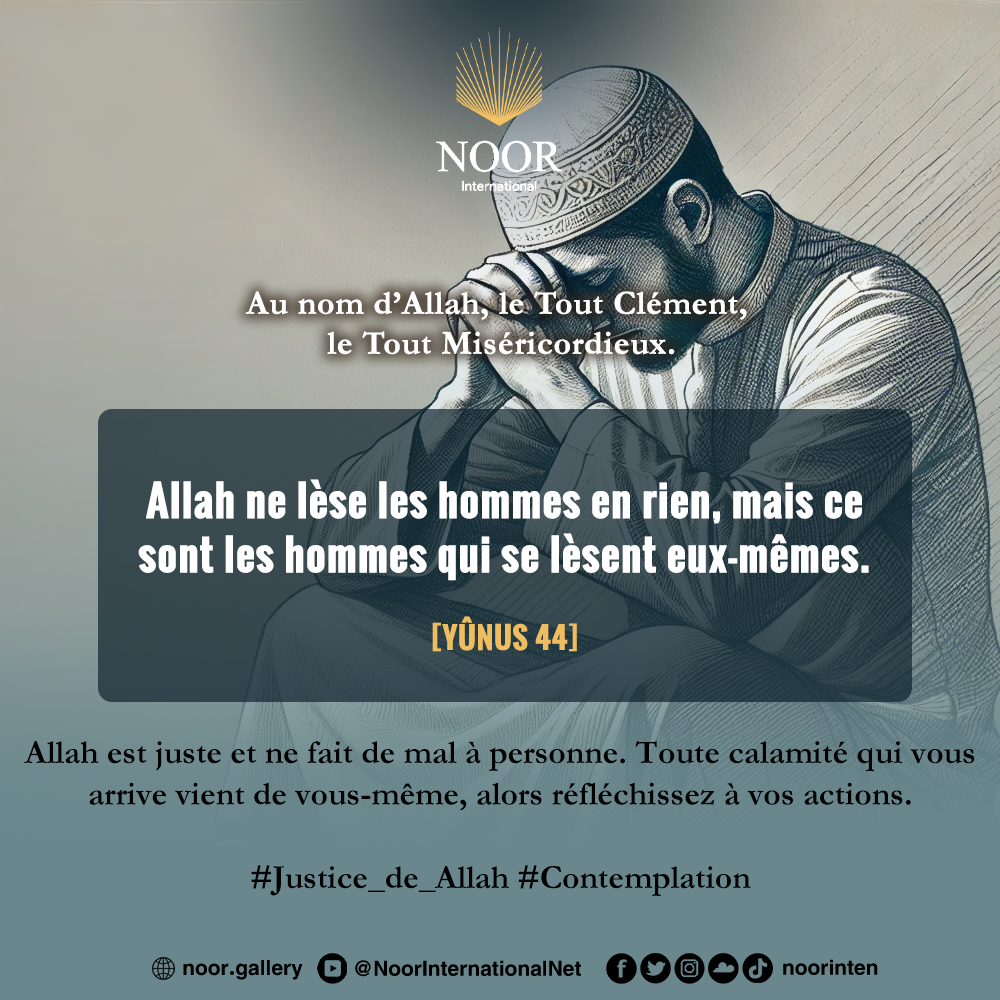 Allah est juste et ne fait de mal à personne. Toute calamité qui vous arrive vient de vous-même, alors réfléchissez à vos actions.