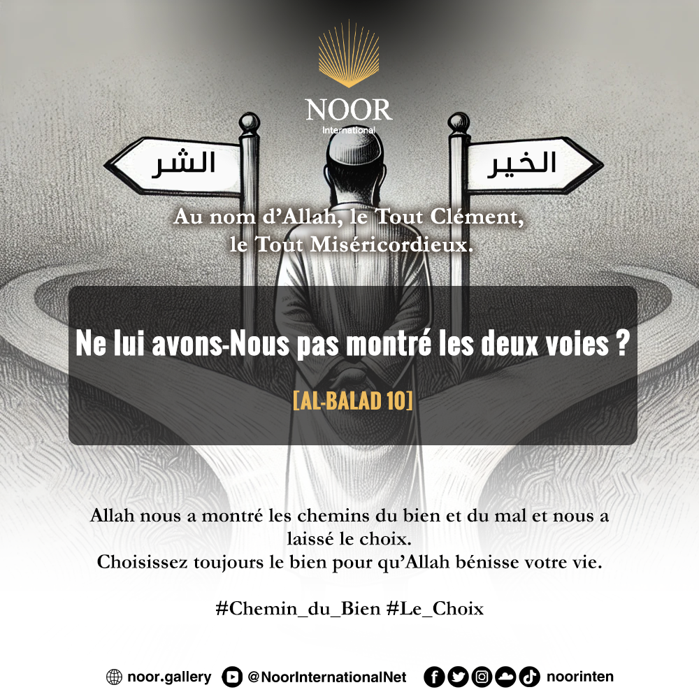 Allah nous a montré les chemins du bien et du mal et nous a laissé le choix. Choisissez toujours le bien pour qu’Allah bénisse votre vie. #Chemin_du_Bien #Le_Choix