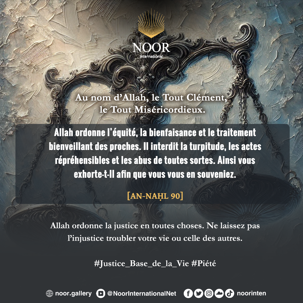 Allah ordonne la justice en toutes choses. Ne laissez pas l’injustice troubler votre vie ou celle des autres. #Justice_Base_de_la_Vie #Piété