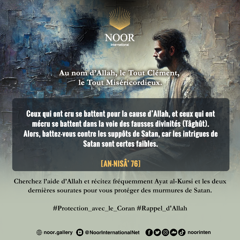 Cherchez l’aide d’Allah et récitez fréquemment Ayat al-Kursi et les deux dernières sourates pour vous protéger des murmures de Satan. #Protection_avec_le_Coran #Rappel_d'Allah